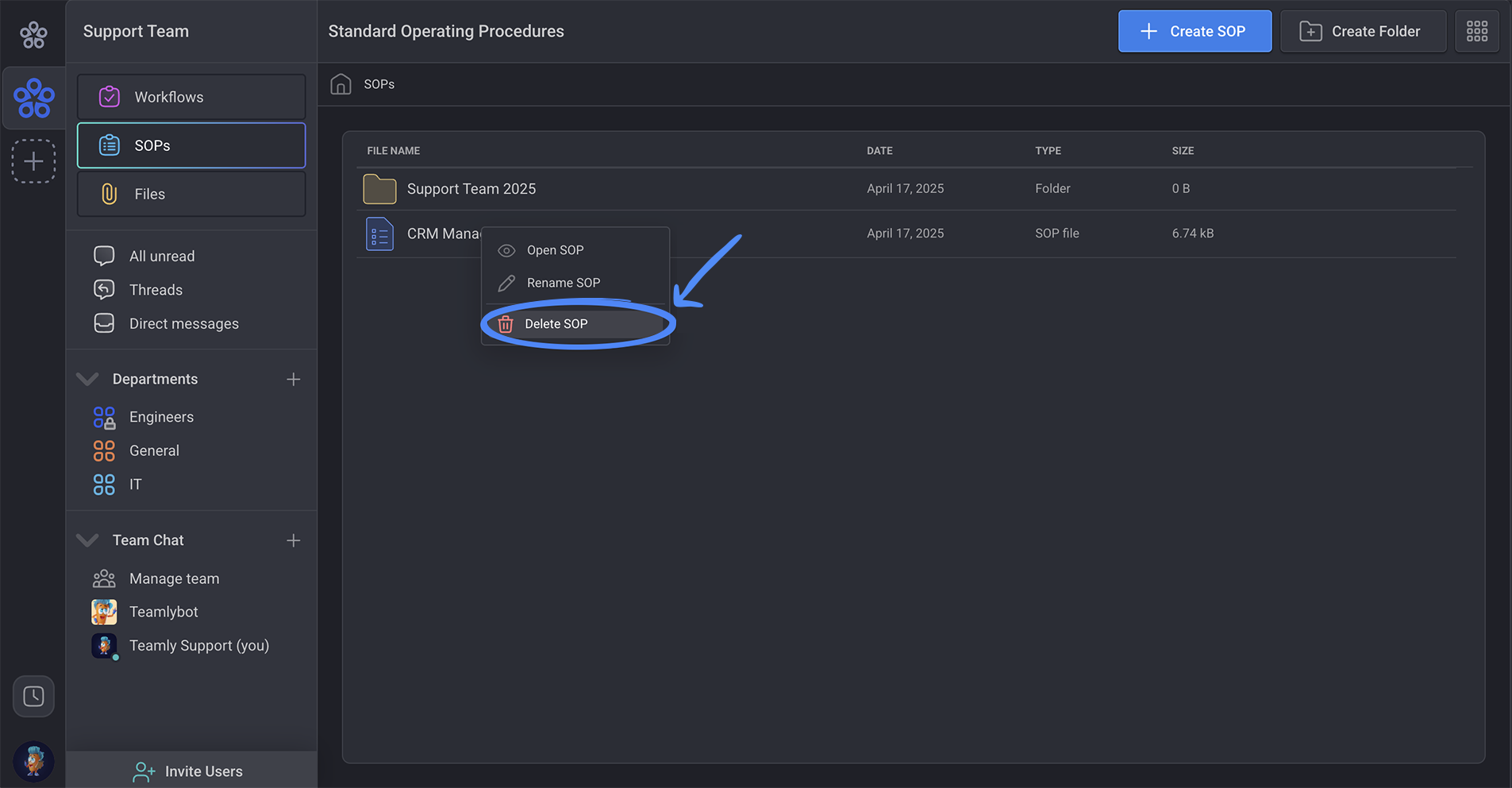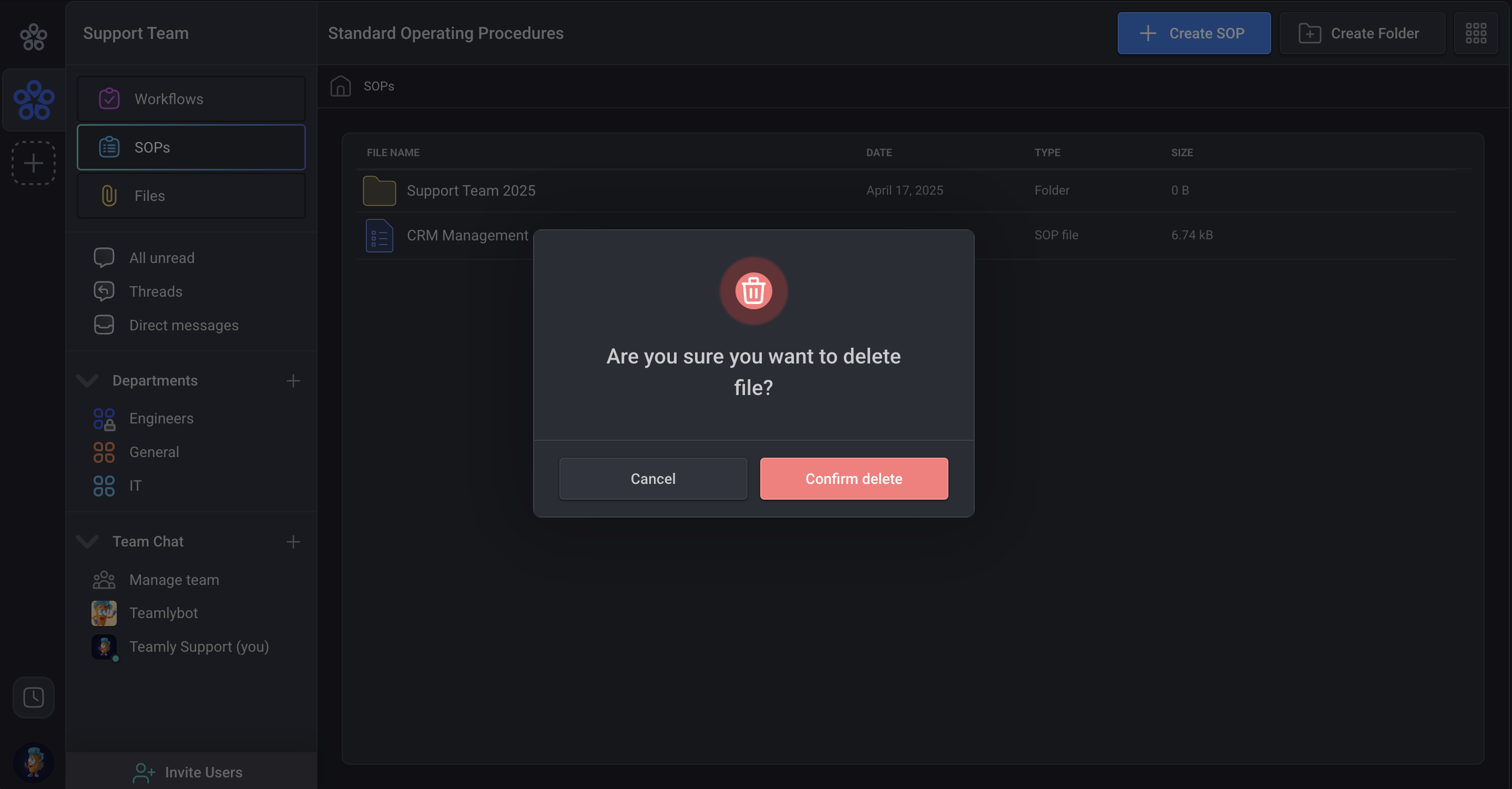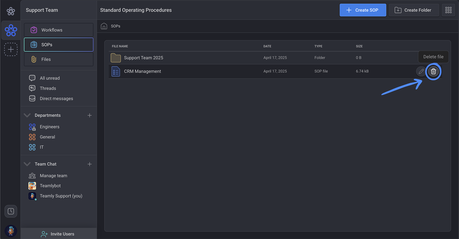 If an SOP is no longer needed you can easily delete them in Teamly.